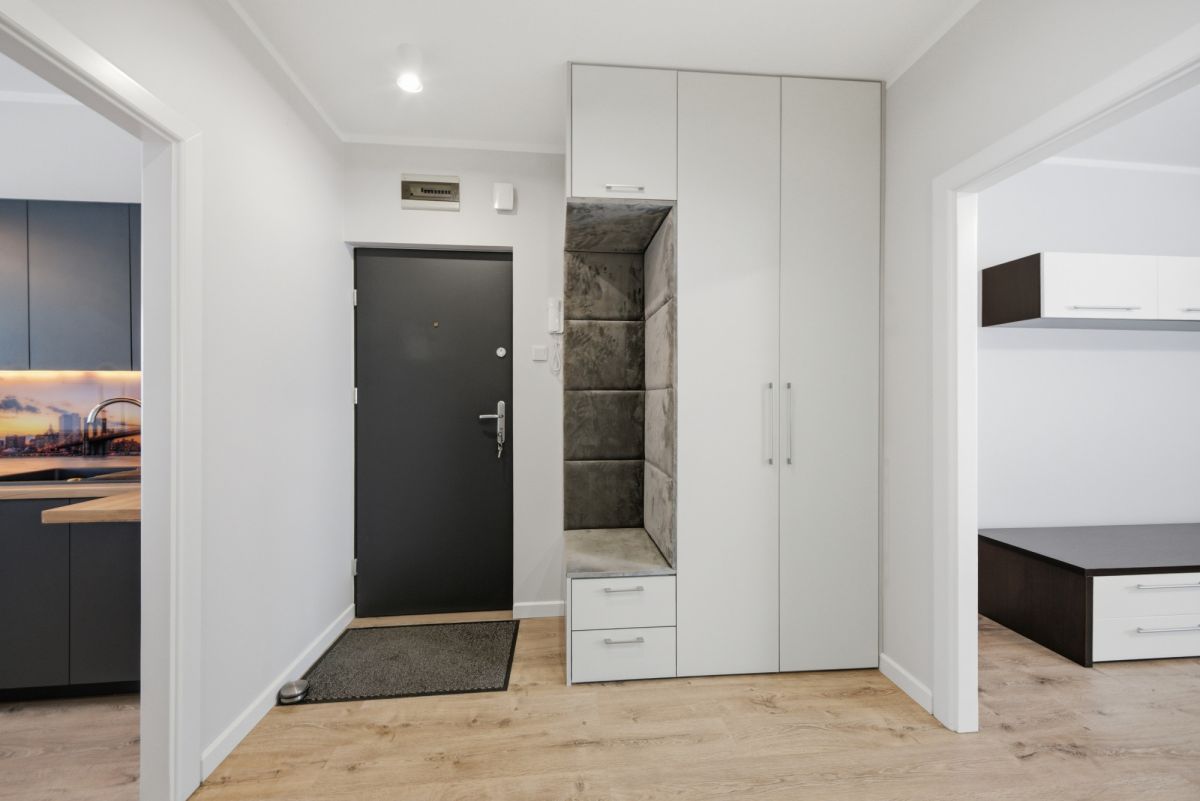 Powierzchnię mieszkania (53,8 m²) stanowią: • Salon z wyjściem na duży balkon, • Pokój / sypialnia z szafą w zabudowie, • Kuchnia, • Przedpokój, • Łazienka z WC.