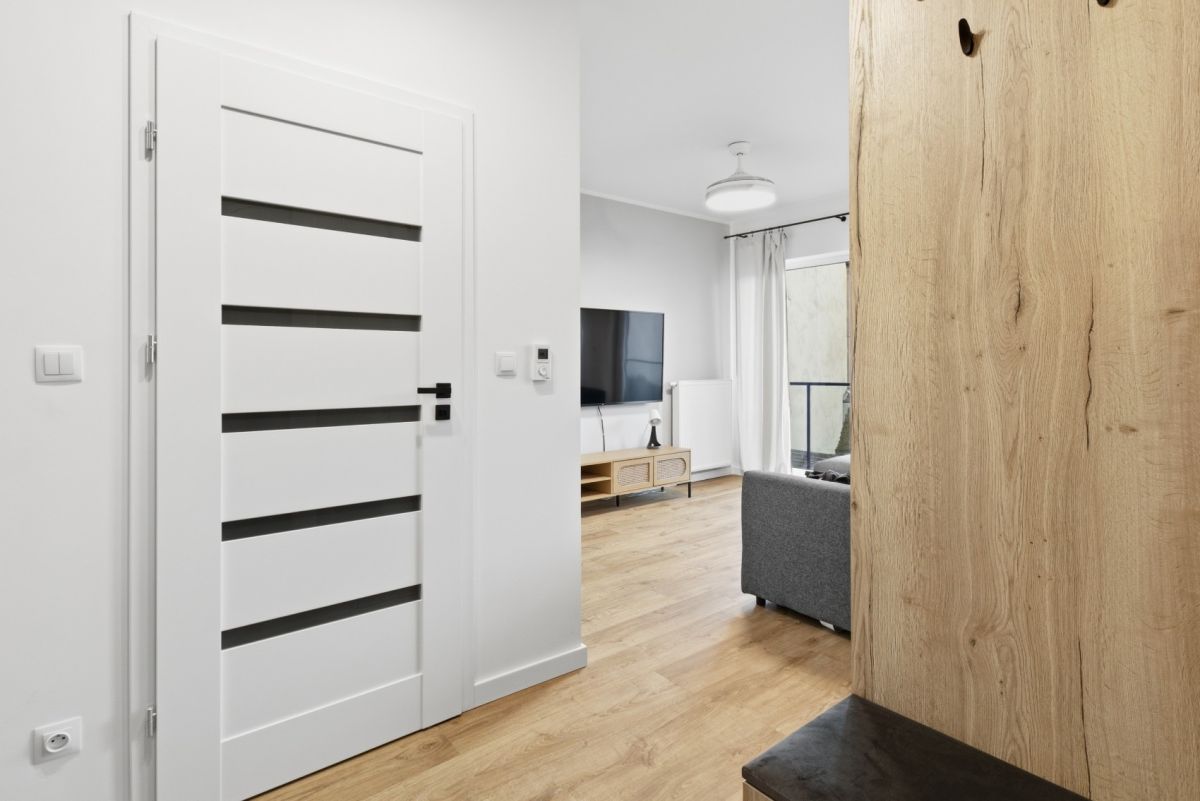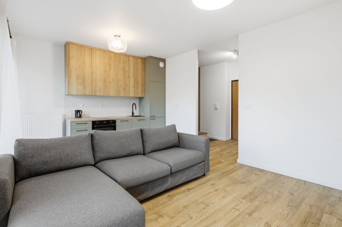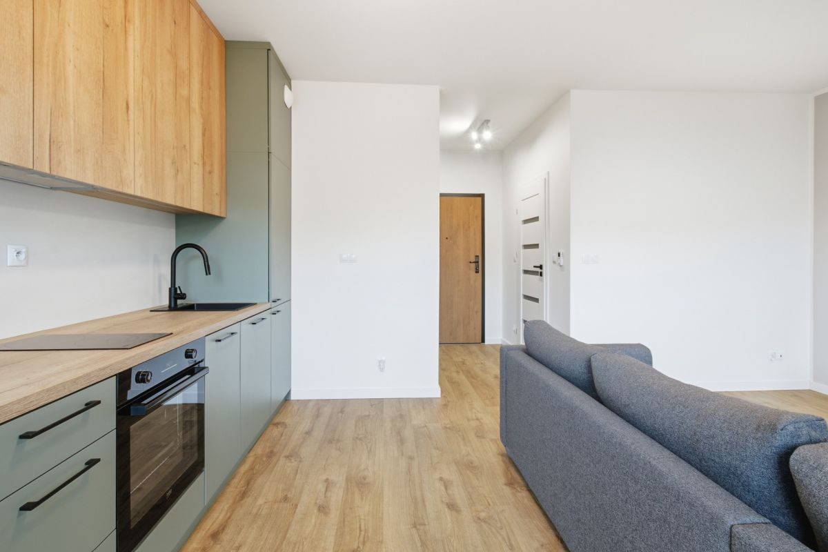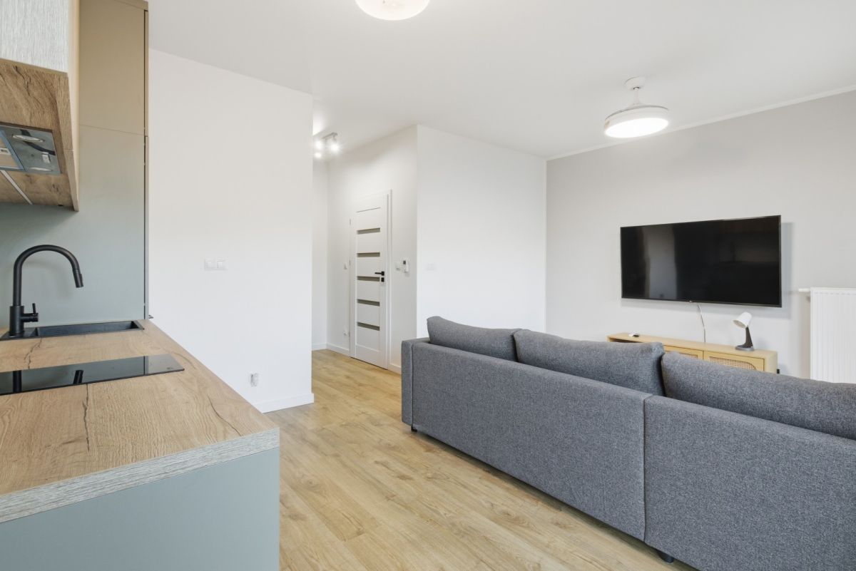 Powierzchnię mieszkania (ok. 30 m²) stanowią: • Pokój z aneksem kuchennym oraz wyjściem na duży balkon, • Przedpokój z szafą w zabudowie, • Łazienka z WC.