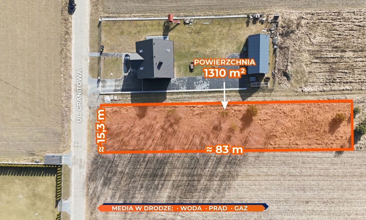 Działka znajduje się przy ul. Granitowej i jest objęta miejscowym planem zagospodarowania przestrzennego (tereny zabudowy mieszkaniowej jednorodzinnej).