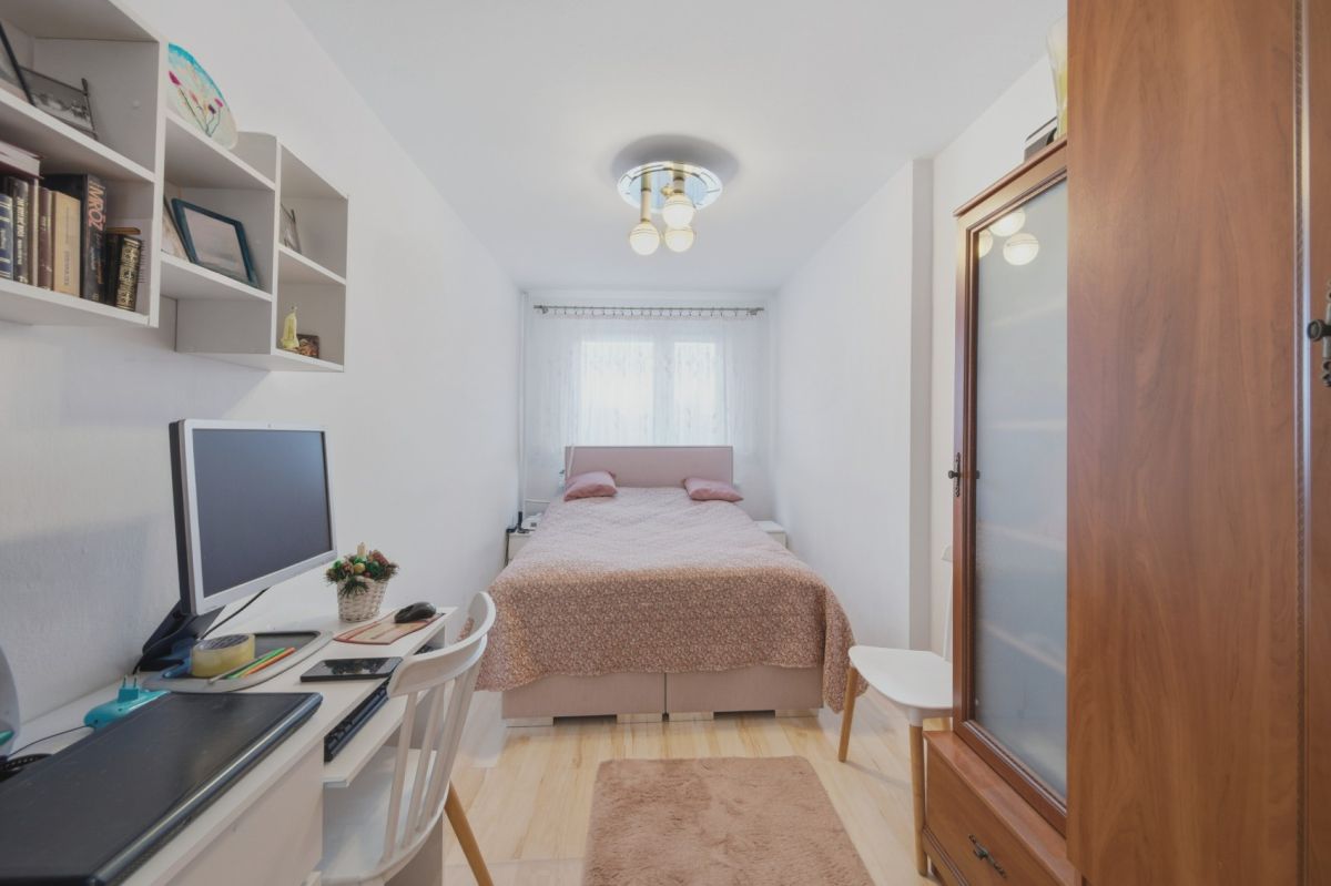 Powierzchnię mieszkania wraz z pomieszczeniem przynależnym (63,6 m²) stanowią: • Duży salon z wyjściem na balkon, • Pokój / sypialnia, • Pokój / sypialnia, • Duża kuchnia, • Przedpokój z dwiema szafami w zabudowie. • Łazienka z WC,