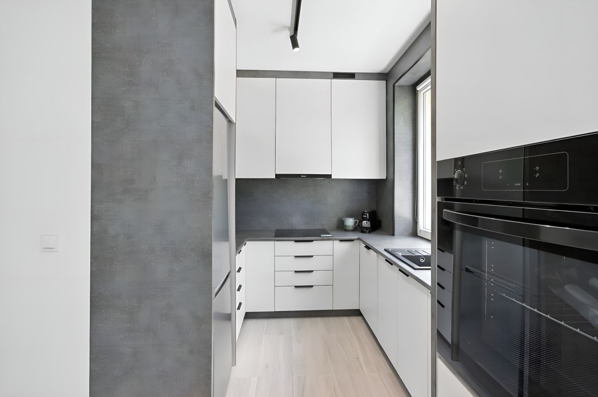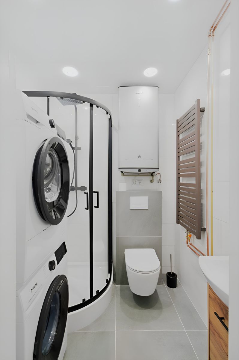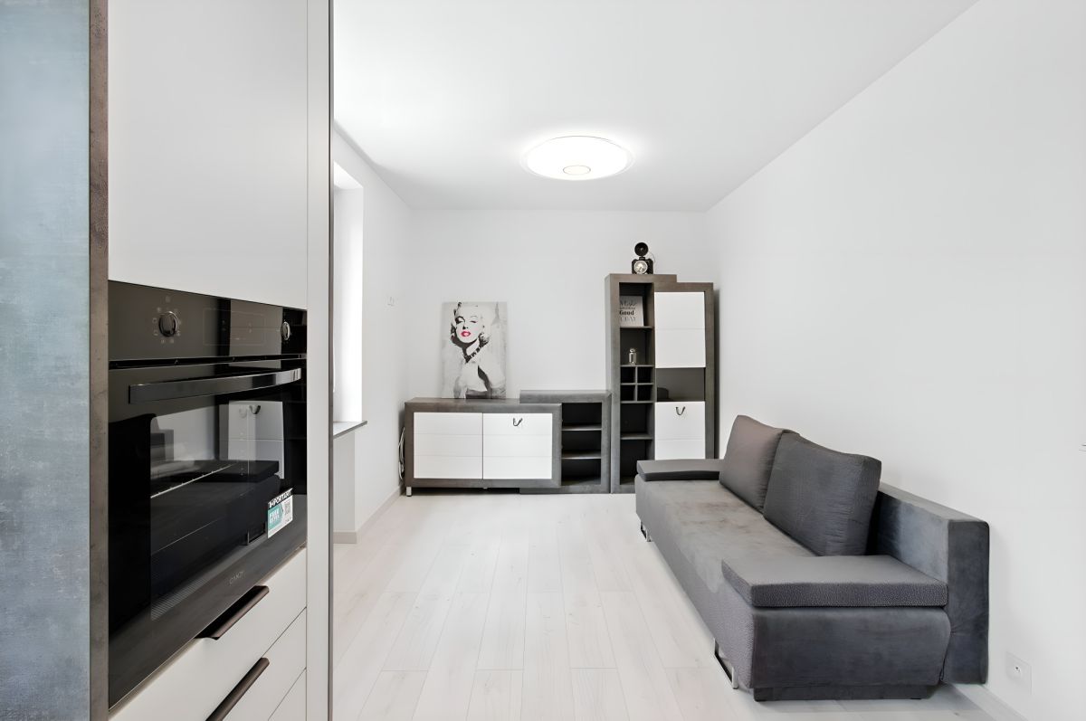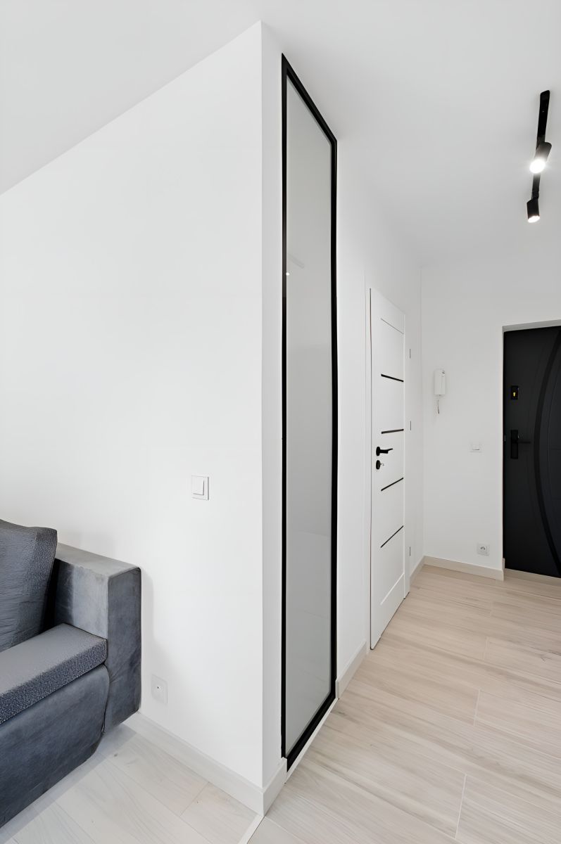 Powierzchnię mieszkania (ok. 33 m²) stanowią: • Salon z aneksem kuchennym, • Pokój / sypialnia, • Przedpokój, • Łazienka z WC.