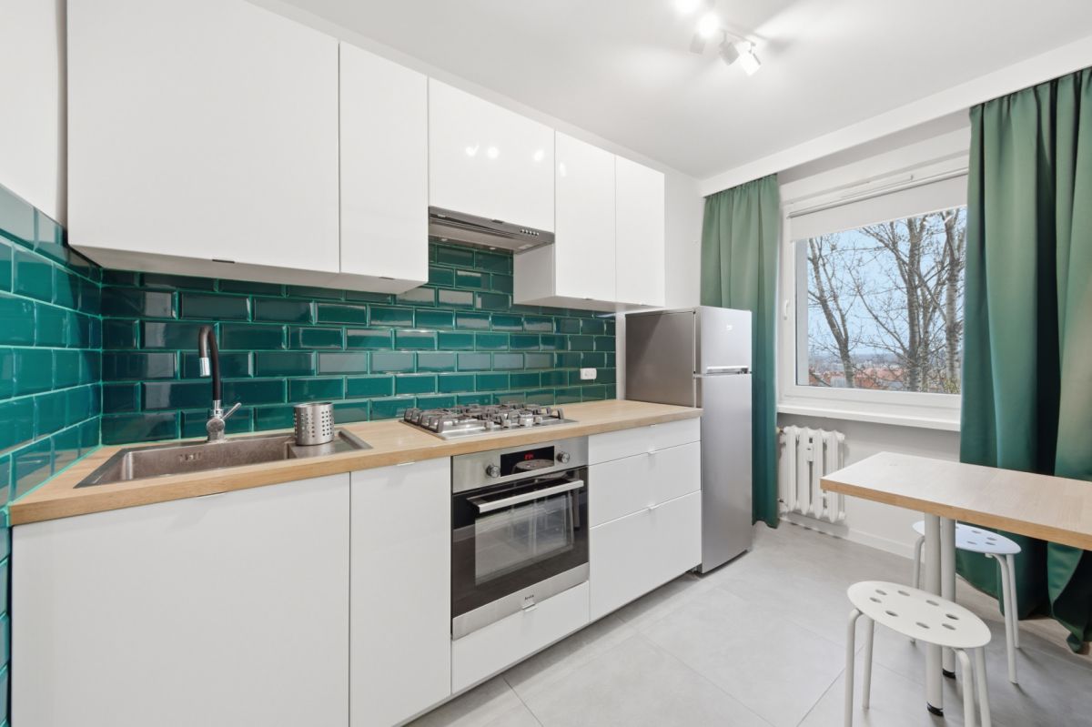 Dwa przestronne pokoje z dużym balkonem. Wyposażenie mieszkania w cenie. Remont wykonany 2 lata temu.