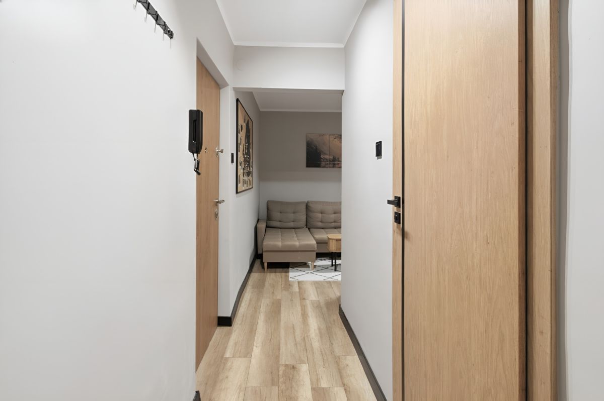 Powierzchnię mieszkania (ok. 34 m²) stanowią: • Salon z aneksem kuchennym • Pokój / sypialnia • Przedpokój, • Łazienka z WC