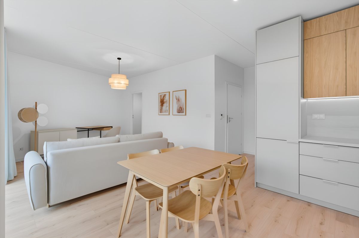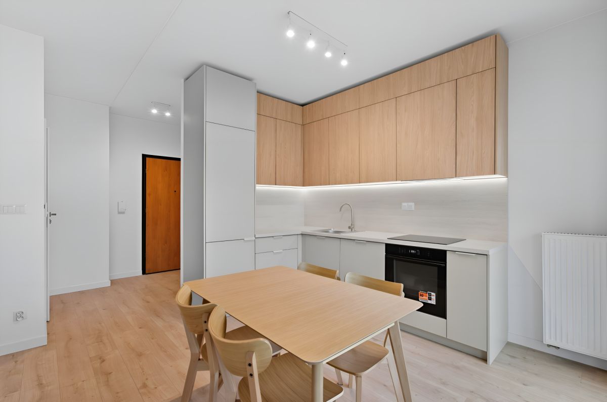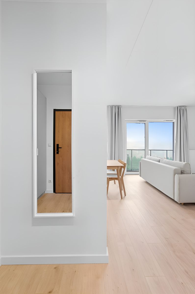 Powierzchnię mieszkania (ok. 43,26 m²) stanowią: • Pokój z wyjściem na duży balkon, • Aneks kuchenny, • Garderoba, • Przedpokój z szafą w zabudowie, • Łazienka z WC.
